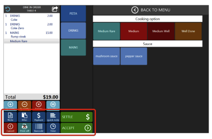 Pressing Settle button accepts the order and directs you to Settle Screen where you can Settle the order (receive payment and close the order) and apply discount. It will also send items to preparation printer.