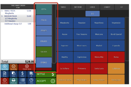 2. Choose from Menu Group panel, for example Pizza